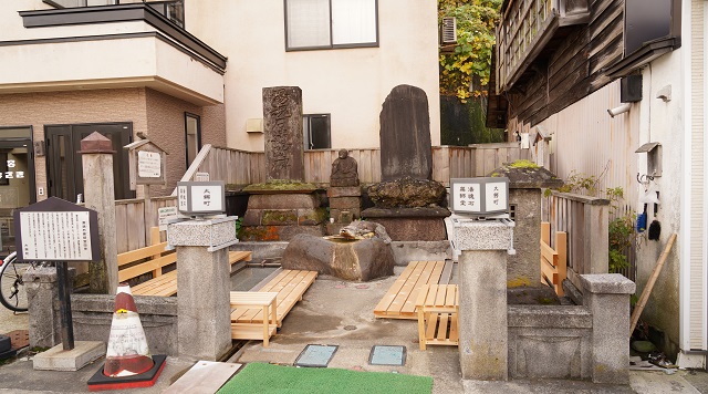 織田信長との戦いに敗れ、旅商人となった工藤助弥の夢に現れた観音様の導きによって発見されたとされる温泉です。中の橋・大円寺・川といった美しいロケーションの中にある足湯です。