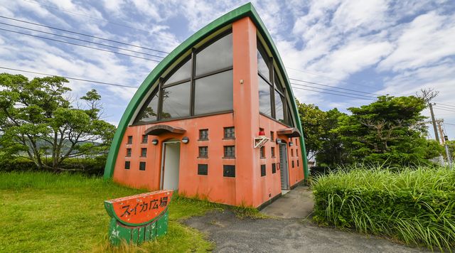 今回のフォトドラは指宿市。世界的に珍しい天然砂蒸し温泉を中心に、たくさんの人が訪れることを目標にしたまちです!そんな指宿市へ、フォトドラナビゲーターの新留さんと角囿リポーターが「ヤリス」で向かいます。「今回は、指宿市山川の特産品に関係あるものです!」という新留さんに連れられてやってきたのは、スイカのトイレ。山川特産の徳光スイカをモチーフに、港近くの広場に設置されています。その存在感の大きさに立ち寄る人も多いそうですよ。