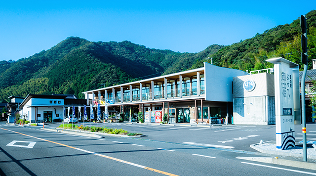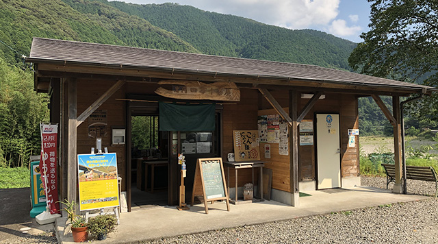 高知と愛媛を繋ぐ国道381号と441号のほぼ合流点に位置する道の駅。新鮮な野菜や特産品が並び、天然鮎の塩焼きや、地元食材を使った食堂やケーキ屋がテナントとして入っています。