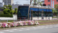 併用軌道区間に入ってすぐの停留場です。道路から線路に変わる珍しい風景が見れます。