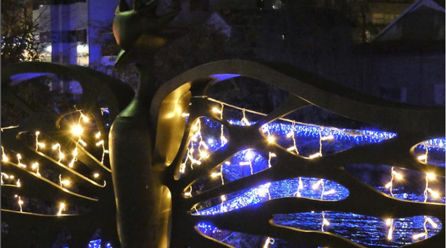 メキシコの芸術家セバスチャンの作品です。1994年に駅前広場整備に併せ設置されました。堺を象徴する不死鳥が未来に羽ばたき、堺の発展と他都市との友好を表現しているそうです。
