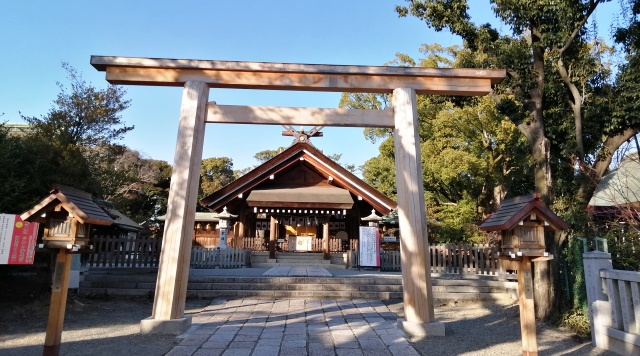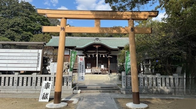 和泉国の一宮。日本神話で有名な日本武尊(やまとたけるのみこと)と大鳥連祖神(おおとりのむらじのみおやのかみ)の2柱を御祭神としています。出雲大社の大社造の次に古いと言われる大鳥造の社殿があり、拝殿前には珍しい八角形の柱の鳥居があります。最近では、「先が見通せる御守」が人気です。スタンプは一の鳥居付近で獲得できます。