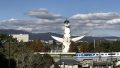 太陽の塔と北摂山系を眺める万博記念公園大階段