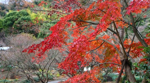 梅が 11 月中旬頃から開花するため、紅葉と梅を同時に楽しめることもあります。